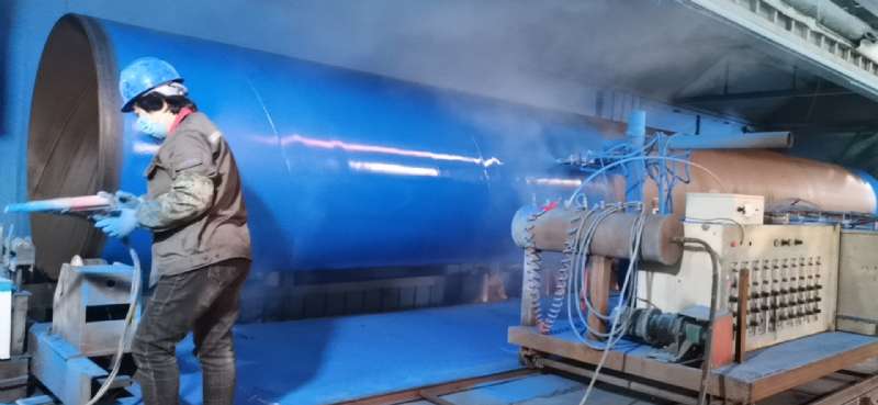 以下是D1420大口徑涂塑鋼管的涂塑加工、施工現(xiàn)場(chǎng)