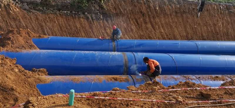 2020年友誠(chéng)管業(yè)為成都大運(yùn)會(huì)北部水廠供貨的涂塑鋼管,就是典型的大口徑涂塑鋼管:基管采用D1420螺旋鋼管,防腐方式為內(nèi)外環(huán)氧粉末涂塑,顏色為藍(lán)色。大口徑涂塑鋼管定尺為12米,一輛半掛車可以裝載4支D1420大口徑涂塑鋼管。