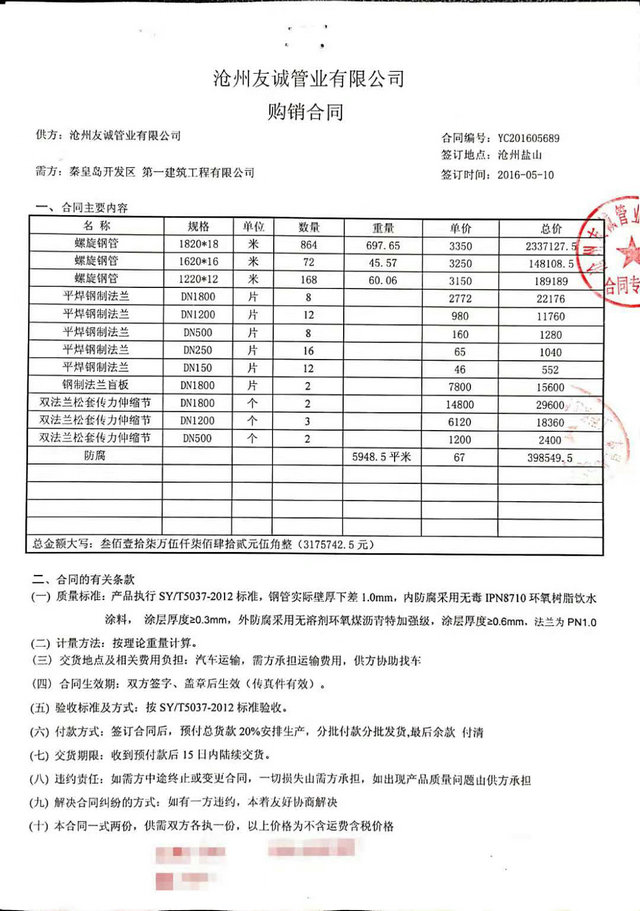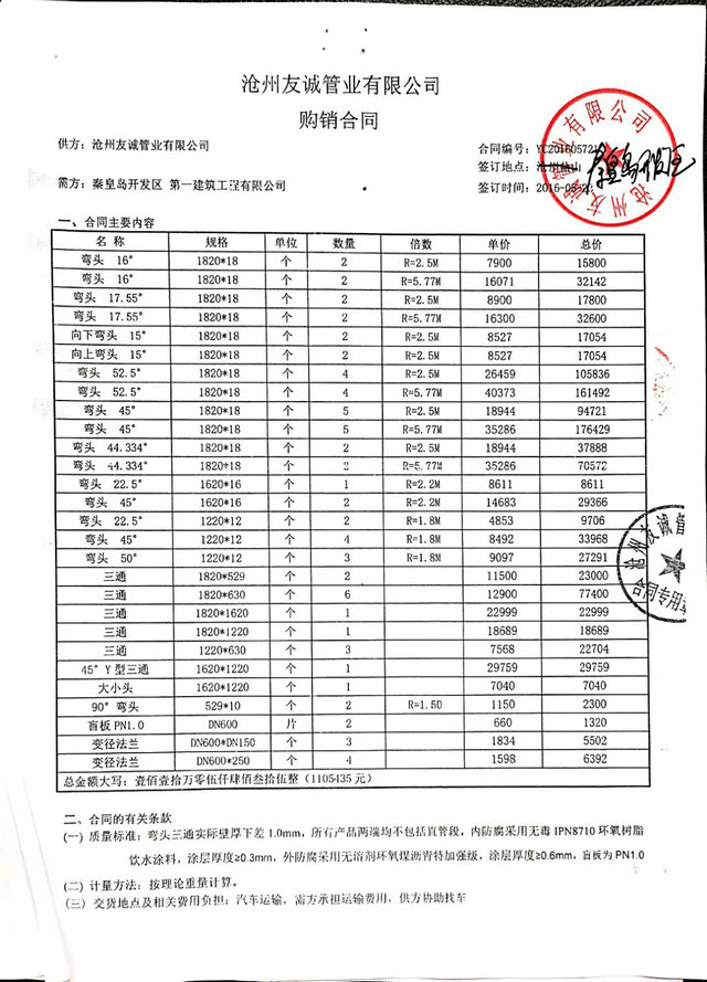 秦皇島開發(fā)區(qū)第一建筑工程有限公司與我公司,2016年簽訂秦皇島開發(fā)區(qū)引青供水工程項目防腐管道合同,我們已最優(yōu)質(zhì)的產(chǎn)品質(zhì)量,順利愉快的完成了這次合作,感謝客戶對我們的信賴,我公司將一如既往再創(chuàng)輝煌